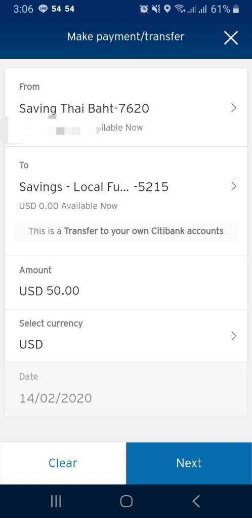 จากนั้นมาลองโอนเงินกัน วิธีการก็ง่ายๆ จากหน้าบัญชีเงินบาทของเรา กดปุ่ม “make a transfer”