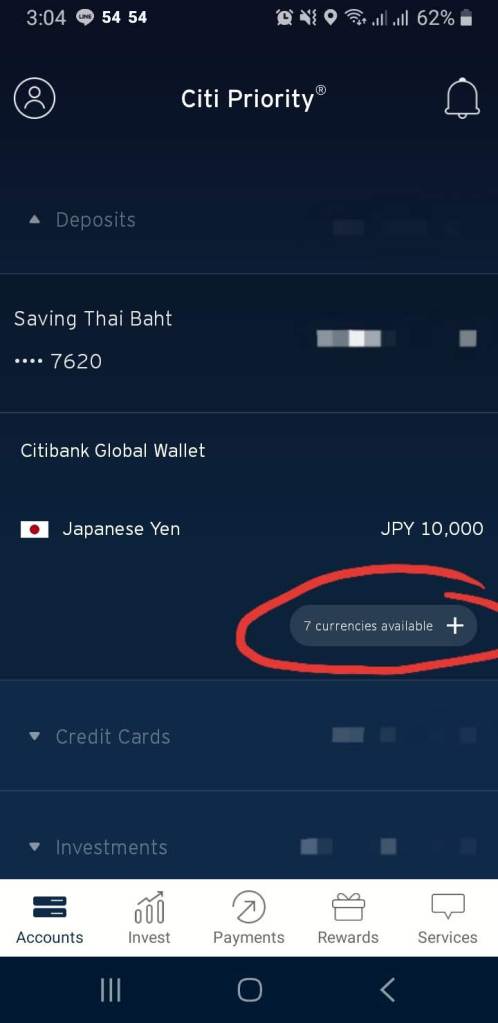 จากนั้นก็เลือกสกุลเงินที่ต้องการ กดปุ่มยืนยันก็จะได้สกุลเงินนั้นๆ โผล่ขึ้นมาในรายการของ Citibank Global Wallet (จะเห็นว่า USD โผล่มาแล้ว 🙂