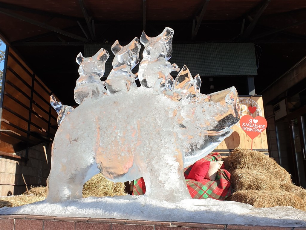 มีน้ำแข็งแกะสลักอยู่ด้านนอกเยอะเลย งามมมม
